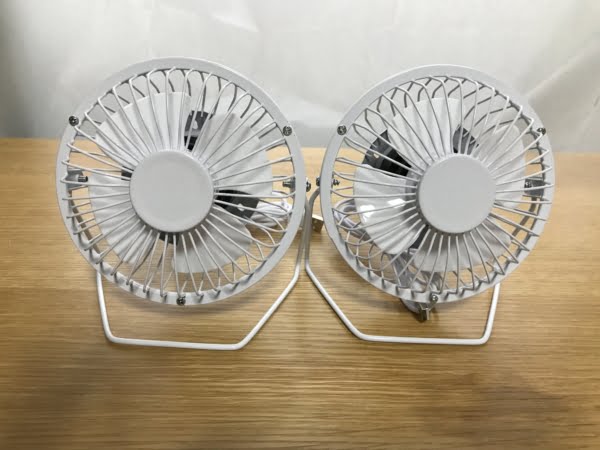 100円ショップで300円の卓上扇風機2個ゲットです。