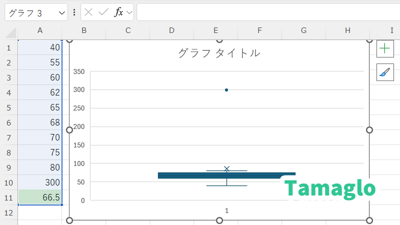- Excelが自動で中央値(箱の中の線)を表示