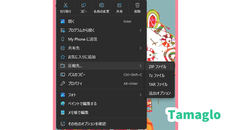 Windowsエクスプローラーには「ZIP圧縮」機能があり、
