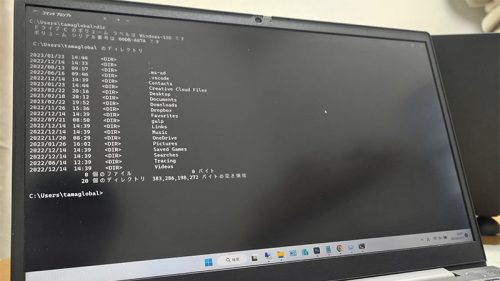 ファイルの表示は「dir」でも可能