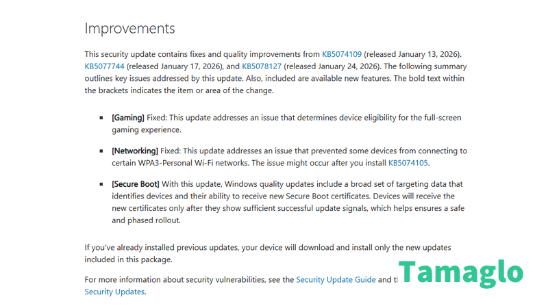 ネットワークやゲーム関連の不具合修正、Secure Boot 証明書の段階的な更新準備など、