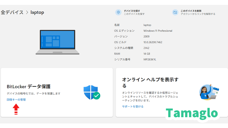 - BitLocker回復キーと「デバイスを探す」を最後に見直す