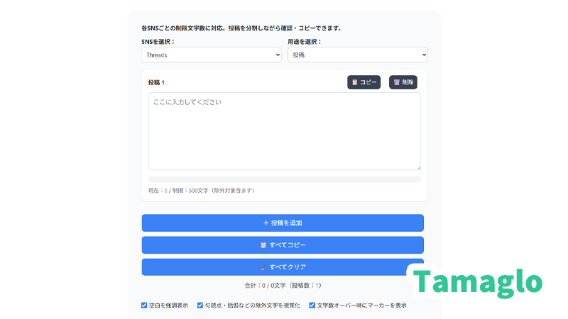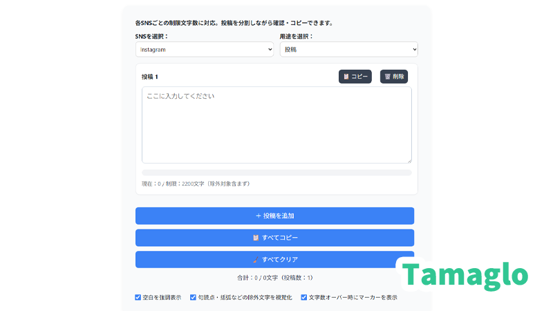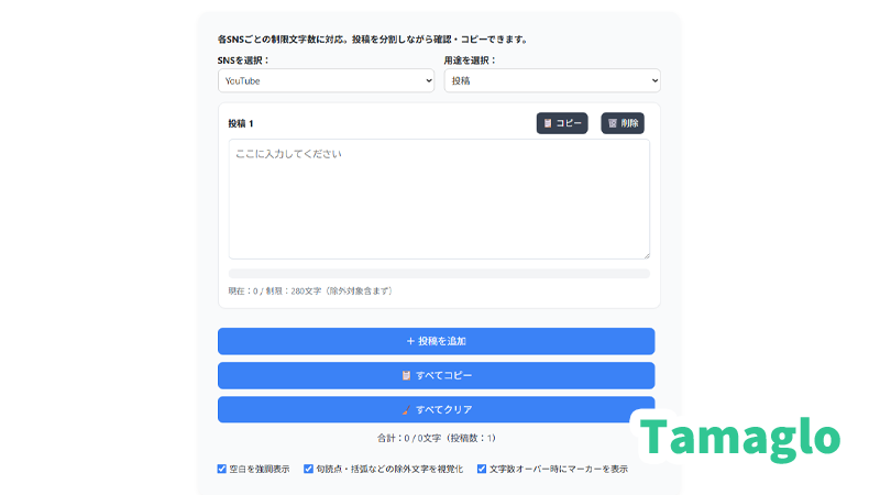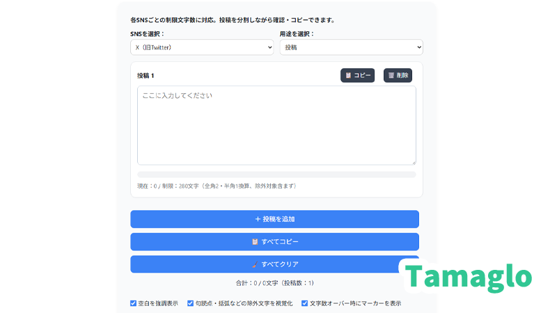 文字数カウントツール|X(旧Twitter)・インスタ・YouTube対応