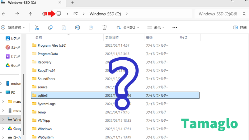 判断を早めるため、エクスプローラーで C:\Windows.old の有無を確認します。フォルダーが見当たらなければ、ロールバックは原則不可と考えます。